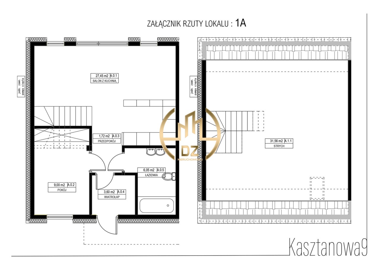 Poddasze: 31,56 m2 (do własnej aranżacji np: